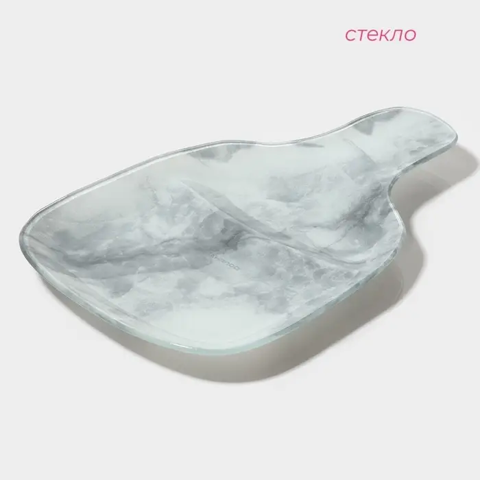 Менажница Доляна «Марбл белый», 2 секции, 27×18×2 см, стекло, серая