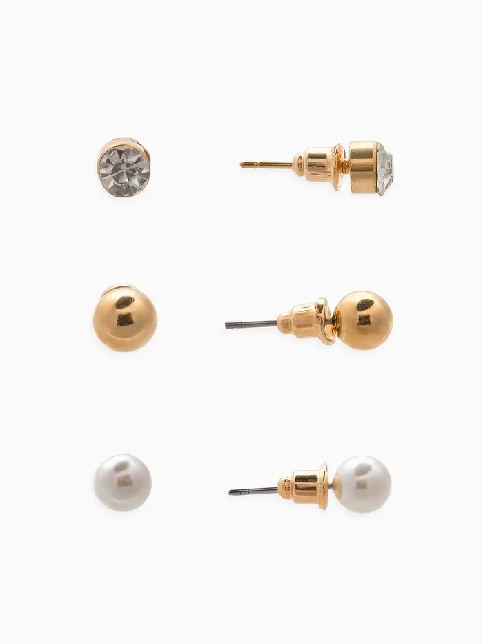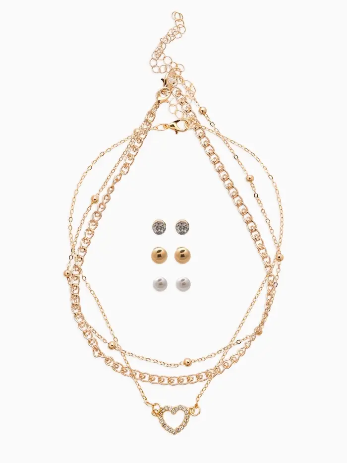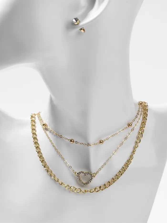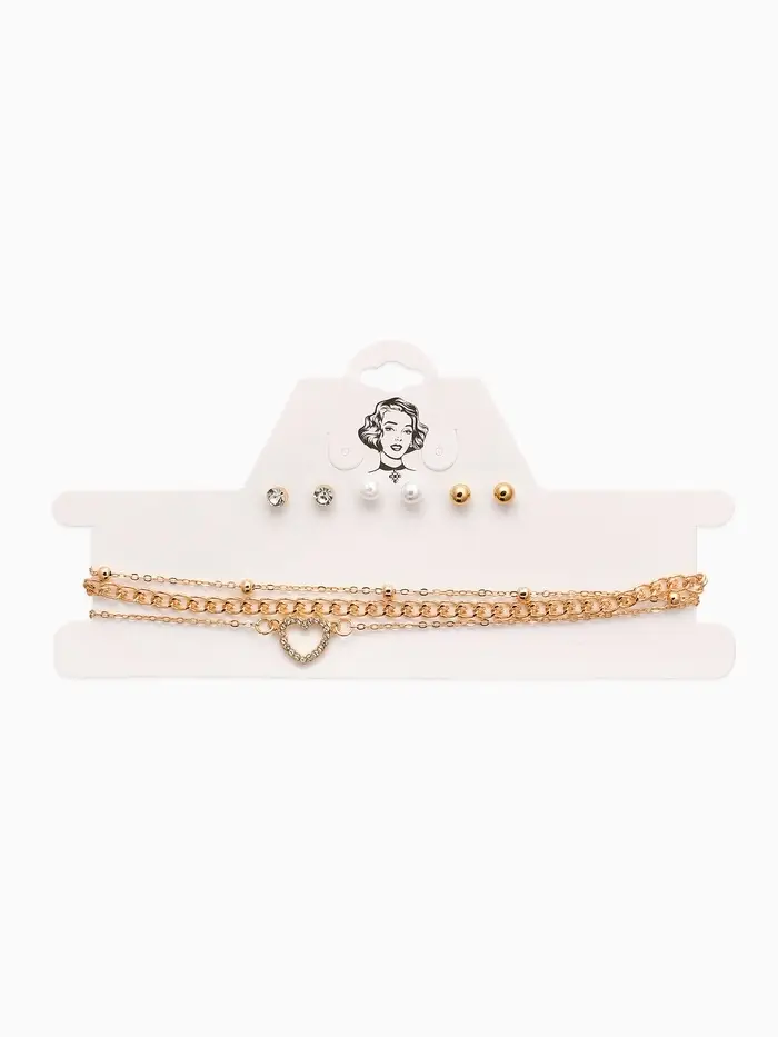 Набор 2 предмета: 3 колье, 3 пары пусет «Эстетика», сердце, белый в золоте, 32 см