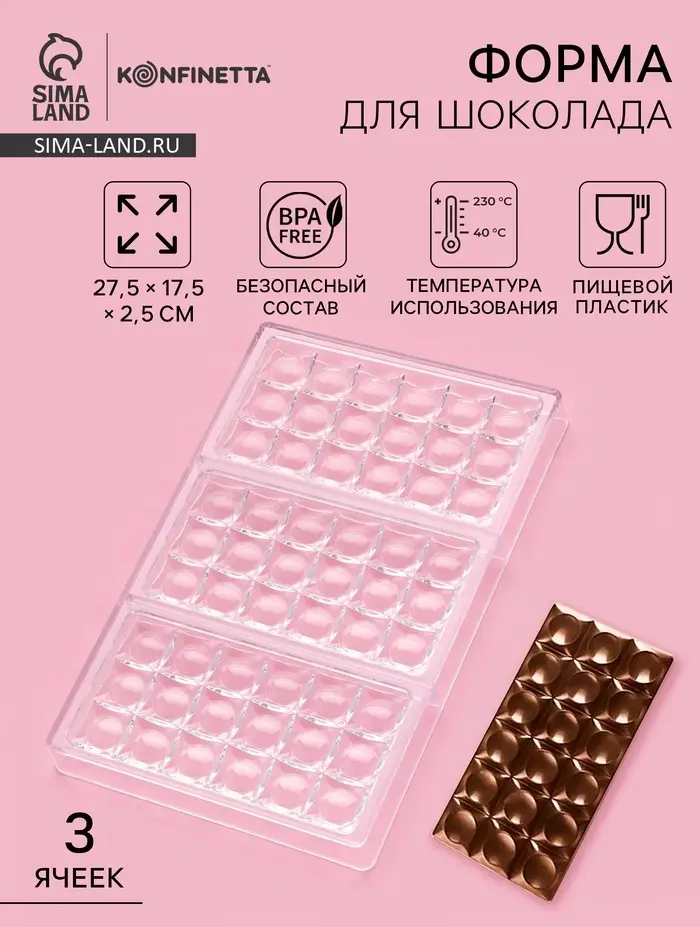 Форма для шоколада KONFINETTA «Поп-ит», 27.5×17.5×2.5 см, 3 ячейки 15.3×7.5×0.8 см, пластик, прозрачная