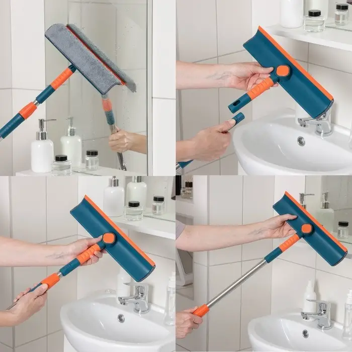 Окномойка с стальной ручкой и сгоном Raccoon, 25×17×105(148) см, 2 насадки из микрофибры