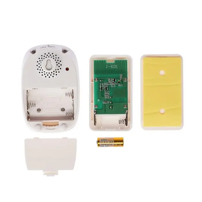 - Работа от батареек. Звонок работает за счёт двух батареек АА, кнопка – от LR23A.