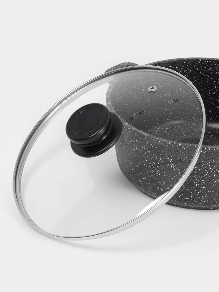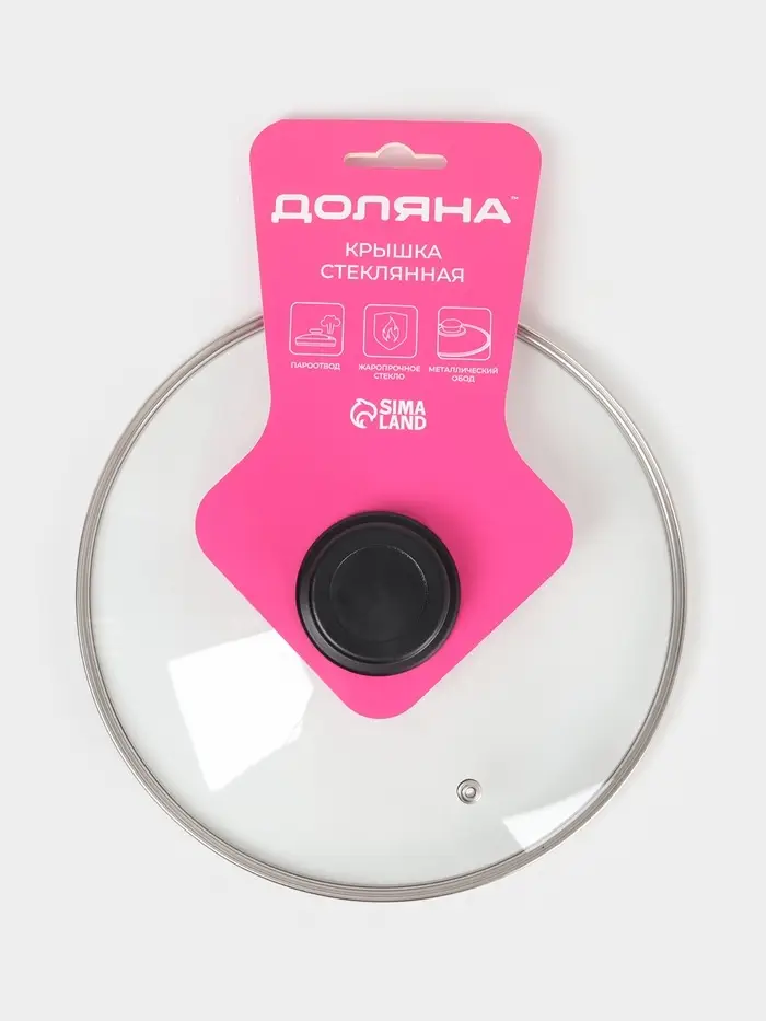Крышка для сковороды и кастрюли Доляна, d=24 см, нержавеющий обод, пластиковая ручка, стекло, прозрачная