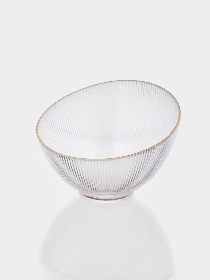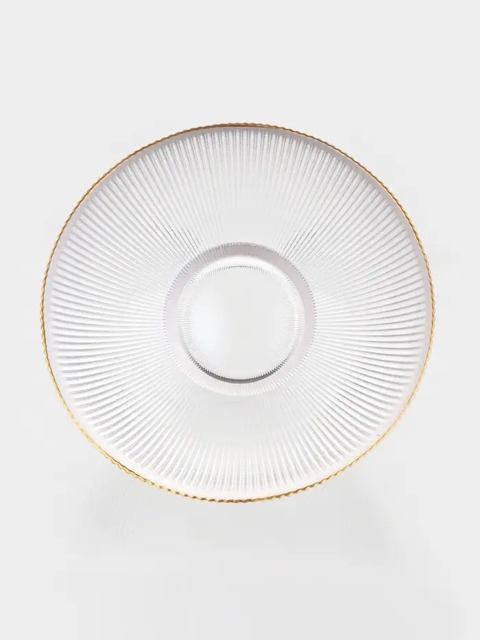 Салатник «Орион» изготовлен из качественного и прочного стекла, имеет необычную форму и красивый рельеф и отводку золотом по краю. Такой салатник подойдёт для классической сервировки и фуршета.