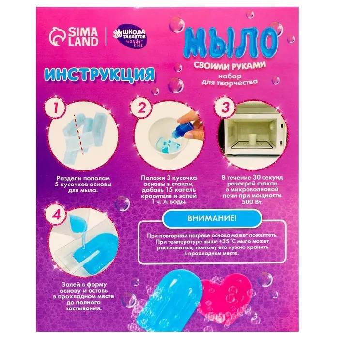 С помощью этого набора вы сможете создать ароматное мыло в домашних условиях. Самое главное, что результат своих трудов можно использовать каждый день.