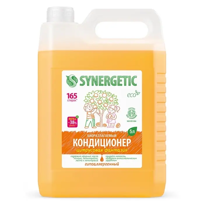Кондиционер-ополаскиватель для белья Synergetic «Цитрусовая фантазия», биоразлагаемый, гипоаллергенный, 5 л