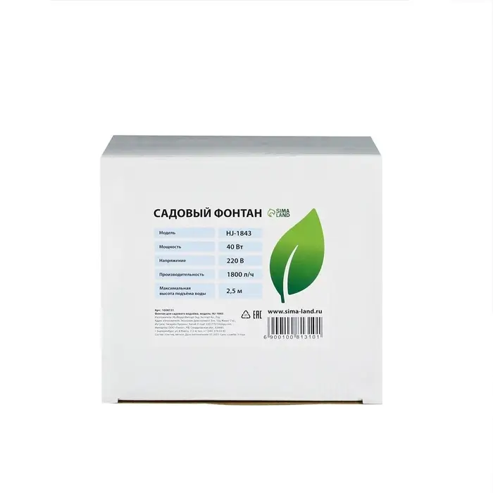 Фонтан садовый HJ-1843, 40 Вт, h=2.5 м, 1800 л/ч, кабель 5 м