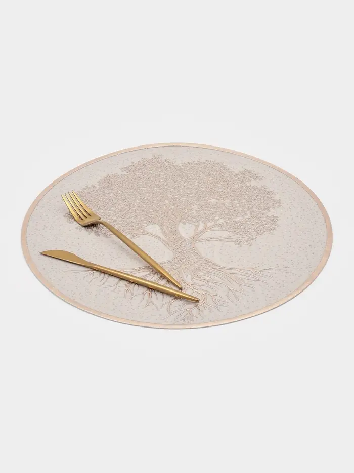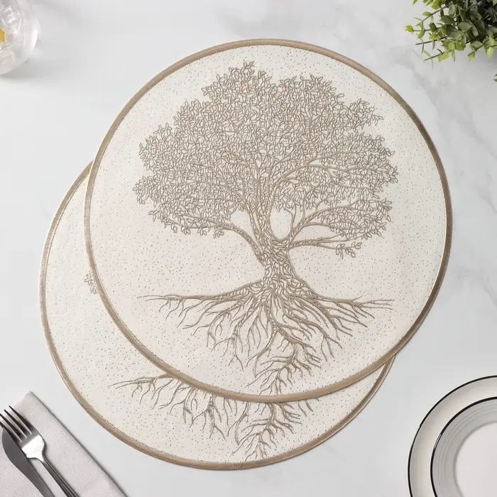Салфетки сервировочные на стол Доляна «Древо», 2 шт., d=38 см, бежевые