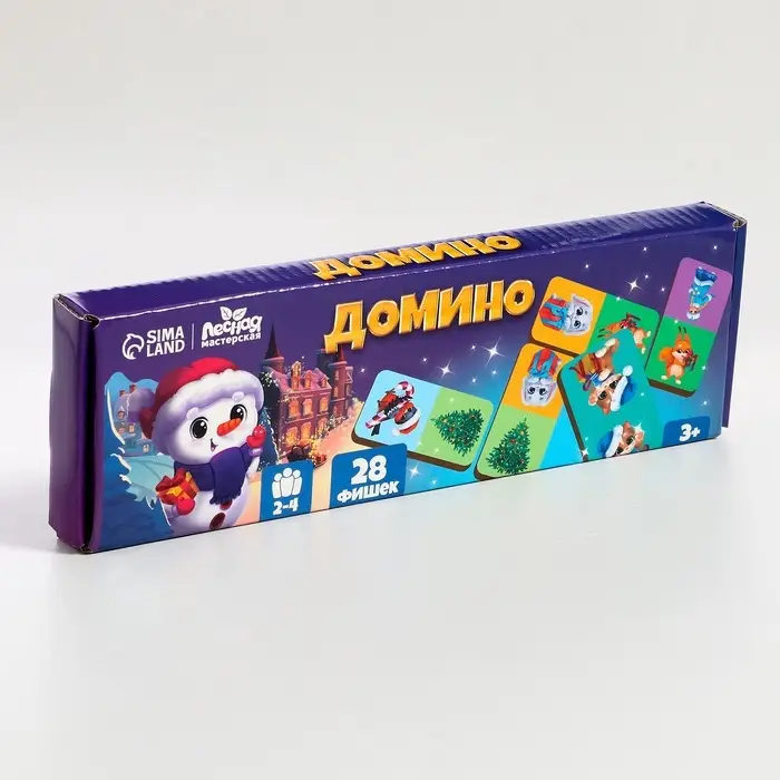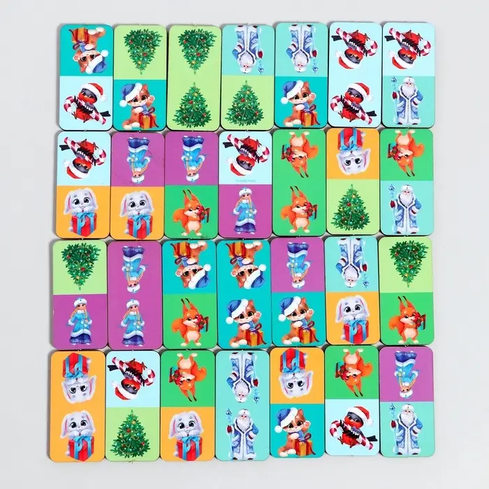 Домино — старинная игра, известная всему миру. Специально для малышей мы разработали свой вариант этого интересного развлечения с яркими новогодними рисунками.