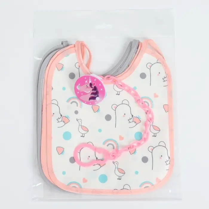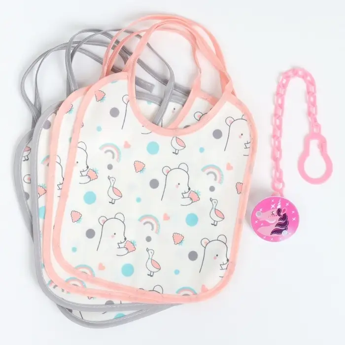 Набор детских слюнявчиков Крошка Я, 4 шт. + подарок, 20×17 см, цвет розовый, серый
