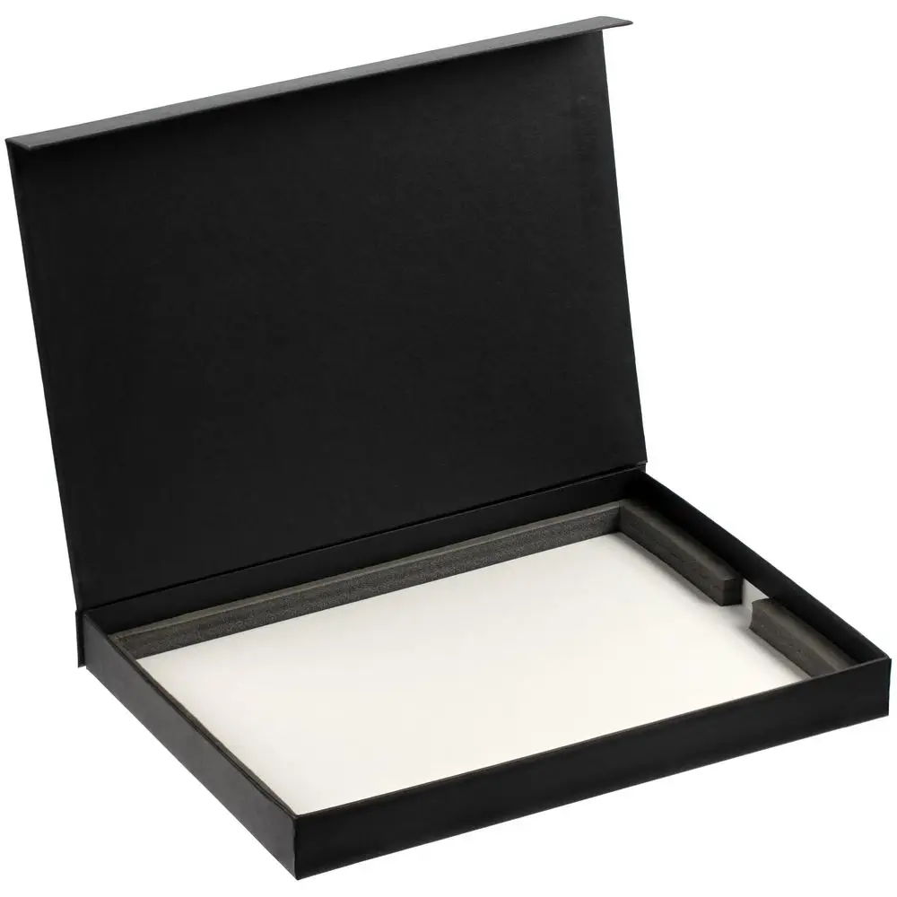 Коробка с ложементом для плакеток и ежедневников формата А4.Коробка с крышкой на магните и несъемным ложементом выполнена из переплетного картона, кашированного дизайнерской бумагой Malmero.