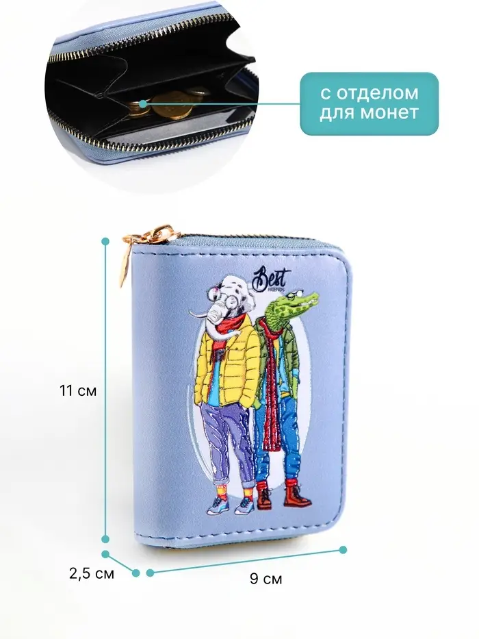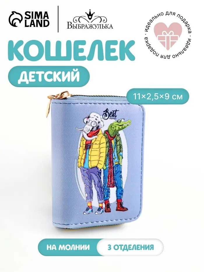 Кошелёк Выбражулька «Крокодил и слон», на молнии, маленький, детский, голубой