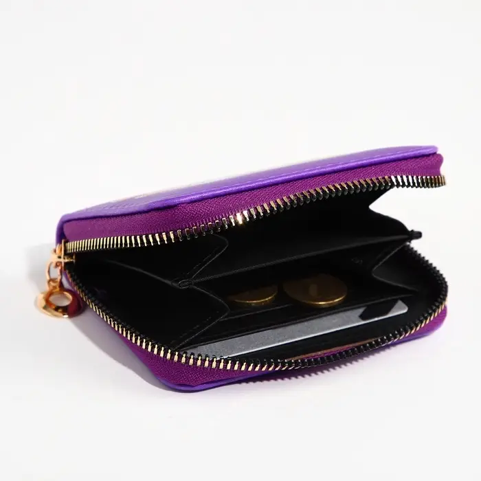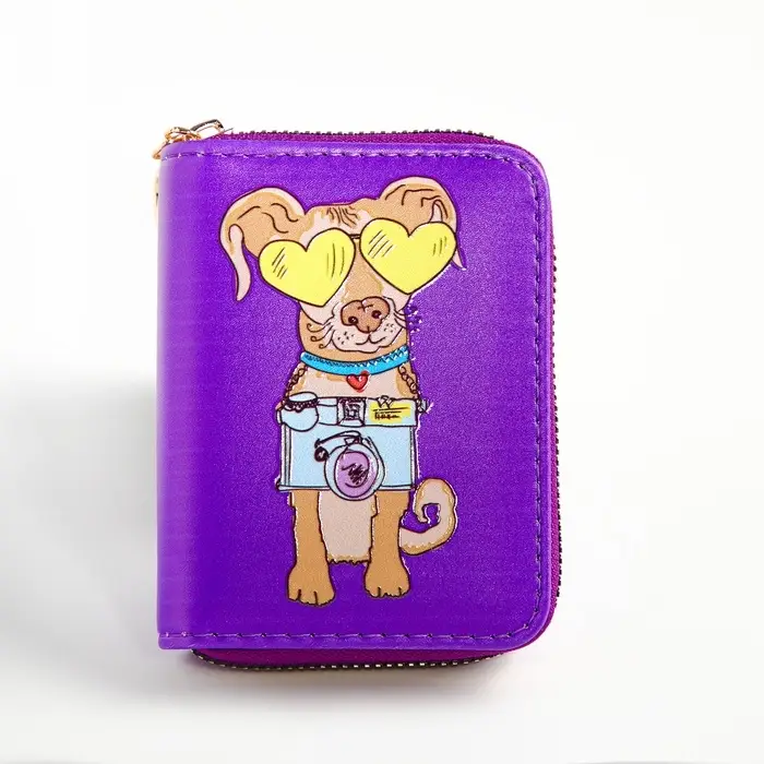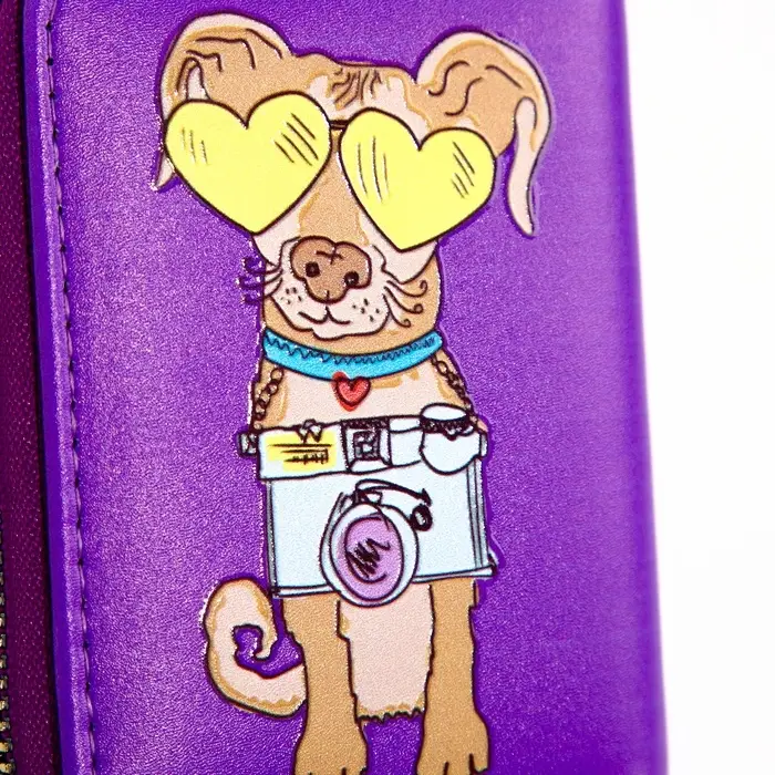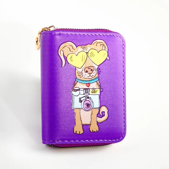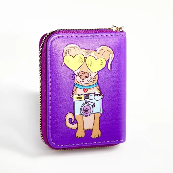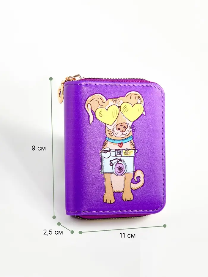 Этот фиолетовый кошелёк с весёлой собачкой станет верным другом вашей дочки в её первых финансовых открытиях. Насыщенный оттенок и милый питомец создают ощущение радости, а практичная организация внутреннего пространства помогает содержать карманные деньги в идеальном порядке. Компактный размер удобно ложится в детскую руку, становясь первым шагом к самостоятельности.