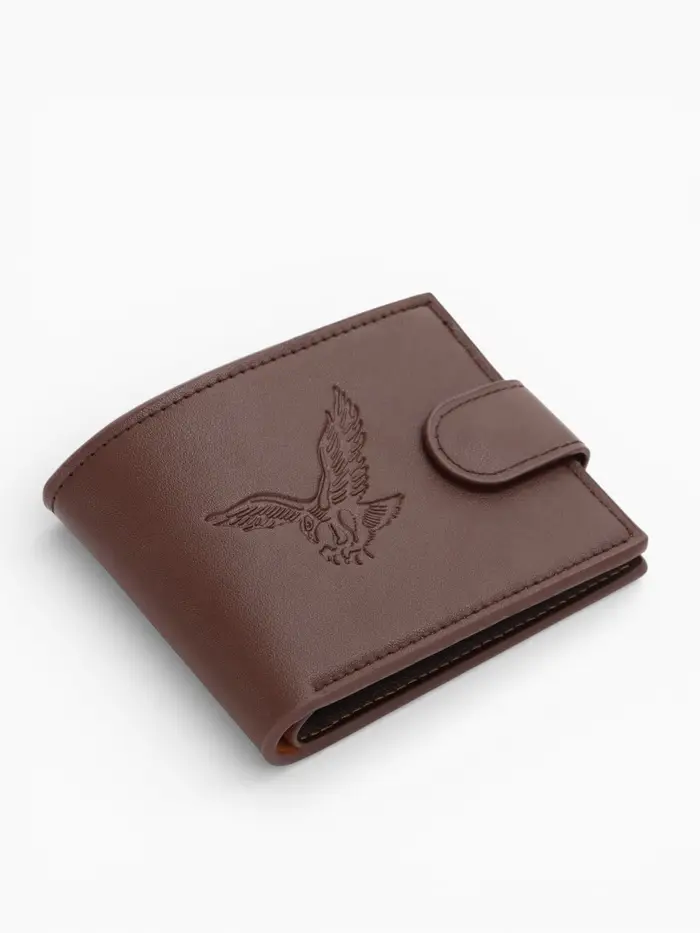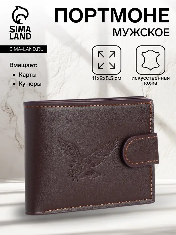 Портмоне мужское «Орёл», на кнопке, два отделения, коричневое