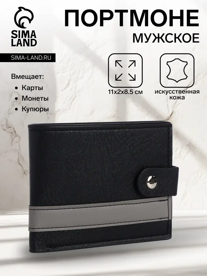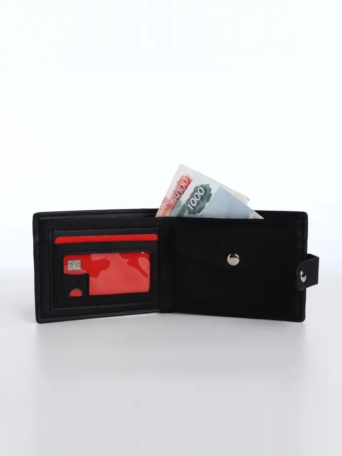 Портмоне мужское «Кхата», на кнопке, отдел для карт, монет, чёрное