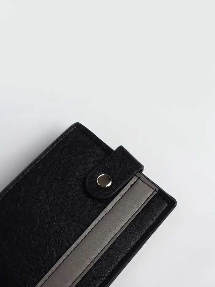 Это чёрное портмоне создаёт ощущение надёжности в повседневном использовании. Оно подходит мужчинам, которые ценят простоту и уверенность в сохранности своих платежных средств.