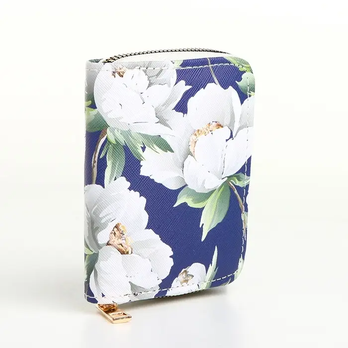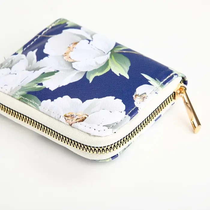 Кошелёк на молнии «Букет», маленький, синий
