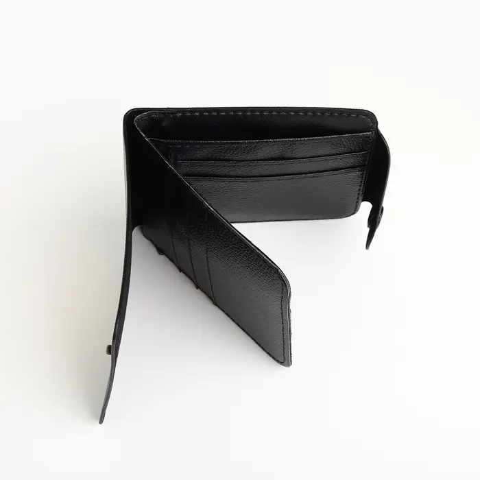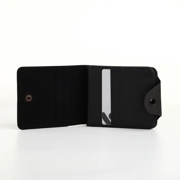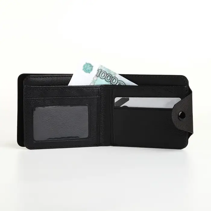 Удобный и стильный кошелёк с кнопкой — это воплощение практичности и модного акцента в вашем повседневном стиле. В изысканно чёрном цвете он станет вашим спутником, привлекающим внимание дизайном. Унисекс-аксессуар выполнен из искусственной кожи, предлагая прочность и современный вид. Двойное сложение обеспечивает компактность, не жертвуя вместимостью.