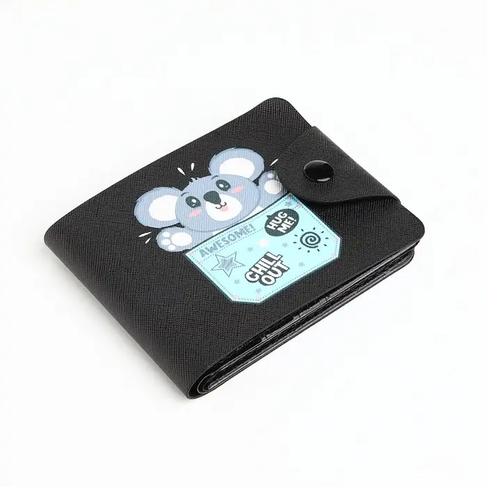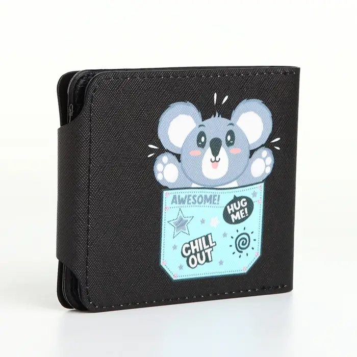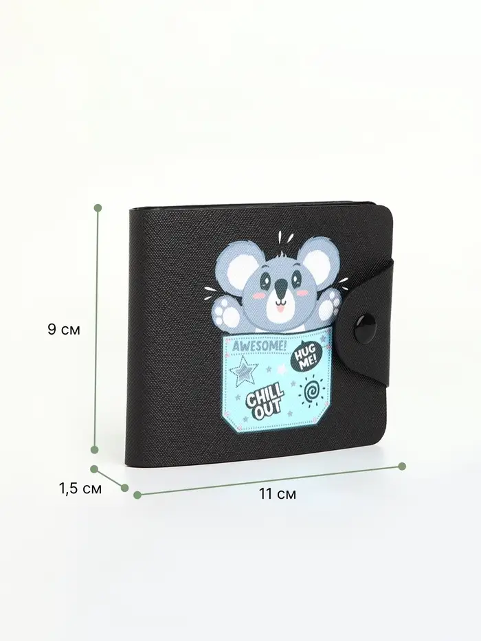 Кошелёк детский «Коала», маленький, на кнопке, чёрный