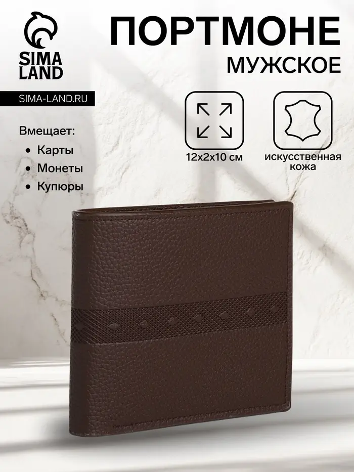 Портмоне мужское «Кайс», на магните, отдел для карт, монет, коричневое