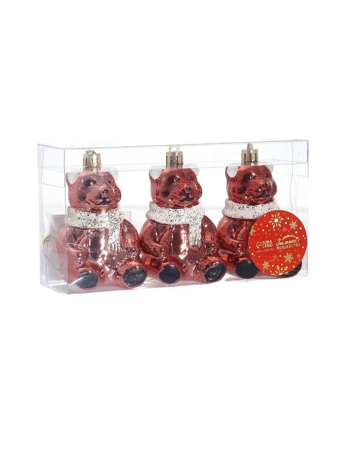 Ёлочные игрушки 3 шт. «Зимнее волшебство. Мишка колор» пластик, 9×5 см, красный