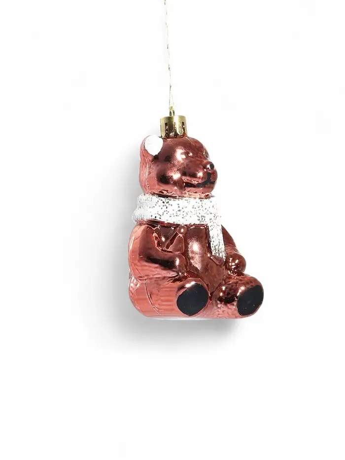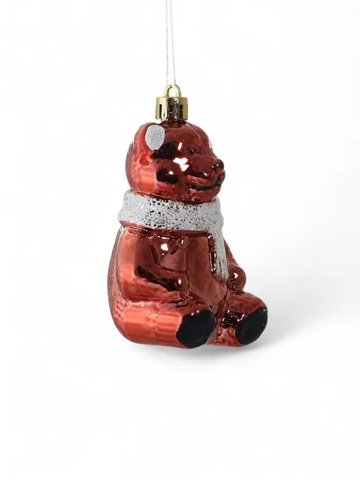 Набор из трёх красных пластиковых фигурок медвежат высотой 9 см станет ярким акцентом в новогоднем оформлении. Их декор с рисунком сочетает элементы барокко и фьюжн, добавляя глубину и праздничный характер зимнему декору.