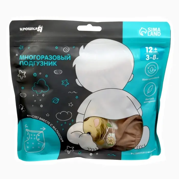 Многоразовый подгузник Крошка Я «Львенок», 3-15 кг, коричневый