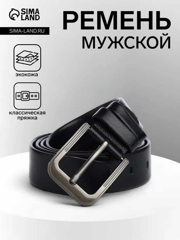 Ремень мужской, ширина 4 см, винт, пряжка металл, чёрный