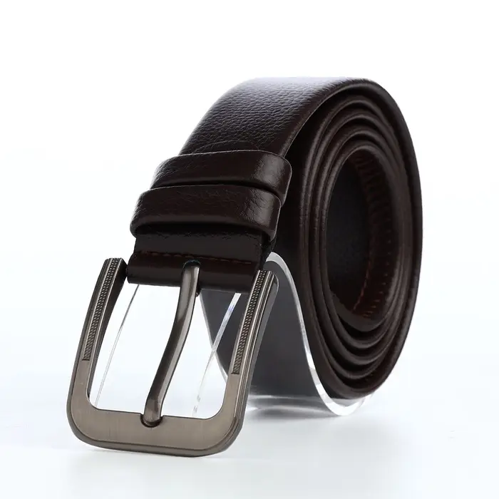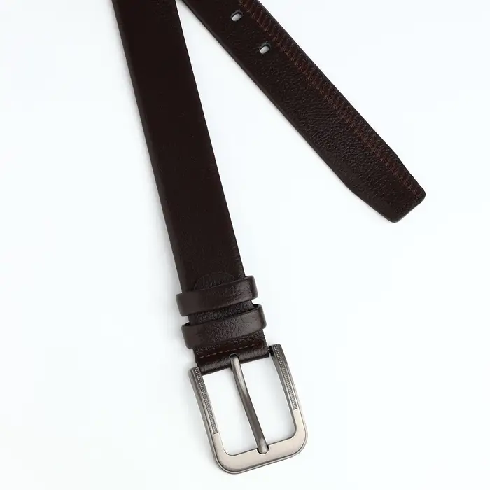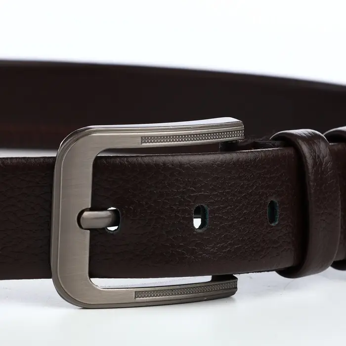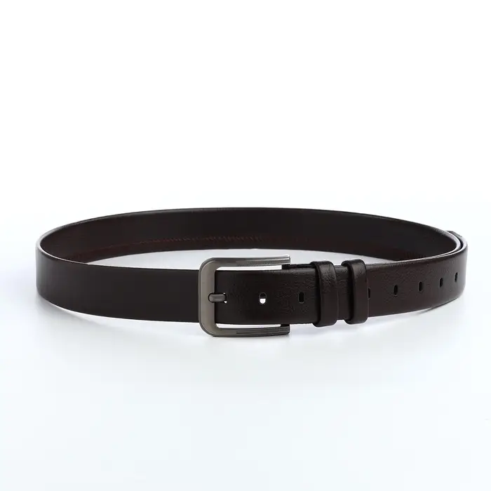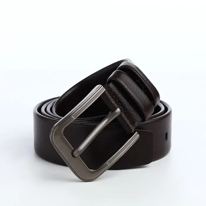 Идеальный вариант для стильного мужчины — коричневый ремень из искусственной кожи. Этот аксессуар, сочетающий в себе практичность и изысканность, станет незаменимой частью вашего гардероба. Ширина в 4 см обеспечивает удобную фиксацию, а тёмная металлическая пряжка с одним проколом добавляет утончённости к любому образу.