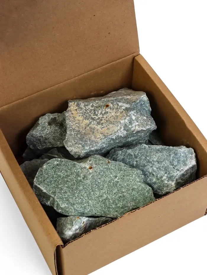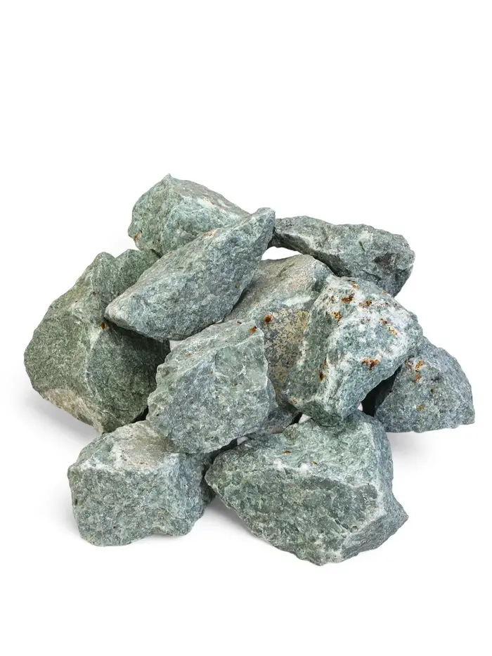 Колотый жадеит для бани, 10 кг — минерал с высокой теплоёмкостью и долговечностью. Его выбирают для каменки из-за стабильной теплоотдачи и способности улучшать микроклимат в парной.