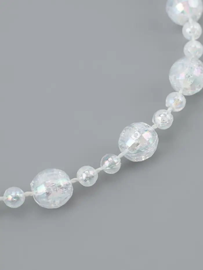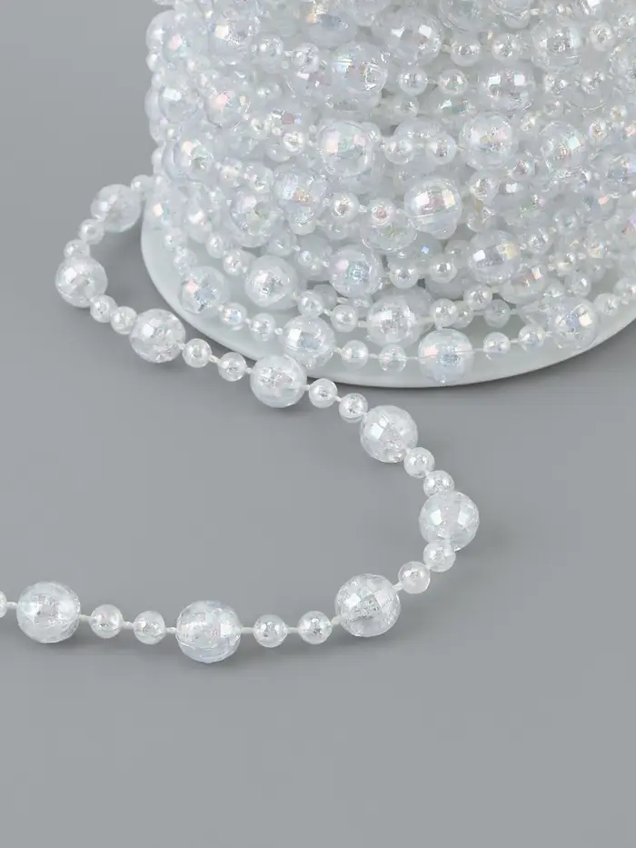 Каждая нить длиной 9±1 метр предлагает безграничные возможности для творчества. Голографический эффект придаёт бусинам особую глубину и блеск, благодаря чему они органично впишутся как в новогодние декорации, так и в оформление свадеб, фотосессий или интерьерных композиций. Прозрачный цвет позволяет экспериментировать с освещением, создавая потрясающие визуальные эффекты.
