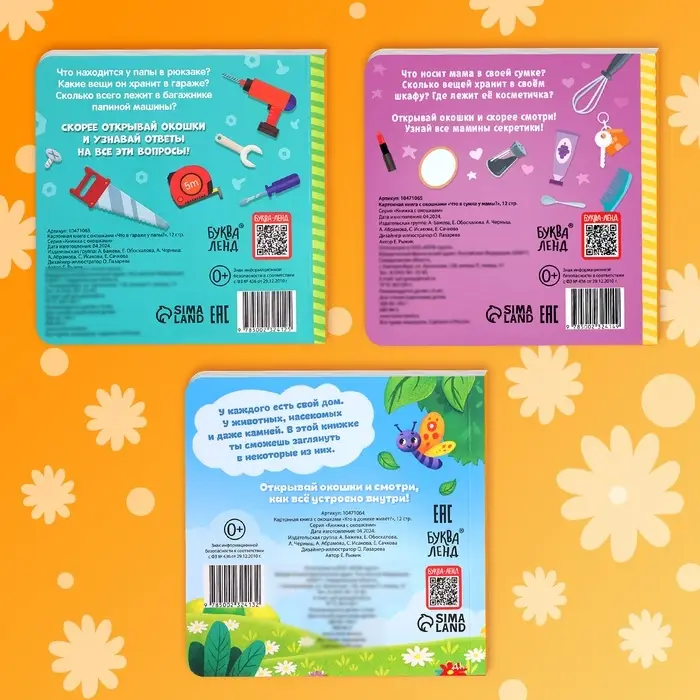Картонные книги с окошками «Что внутри?», набор 3 шт. по 12 стр.