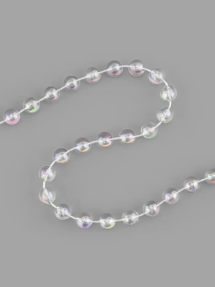 Эти прозрачные бусы с голографическим эффектом станут универсальным аксессуаром для создания праздничной атмосферы. Идеально подходят для украшения ёлки, интерьера, фотозон, подарочных упаковок и новогодних композиций. Благодаря прозрачности и переливающемуся покрытию изделия визуально добавляют глубину и свет.