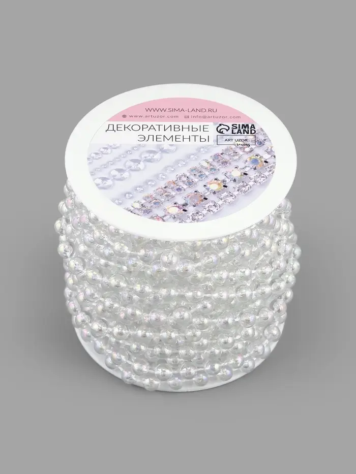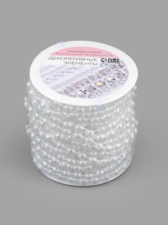 Жемчуг на нитях, с голографией, плоский, 6 мм, 9±1 м, белый