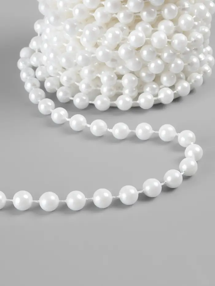 - Жемчуг на нитях, удобный для быстрого создания украшений или оформления интерьера.