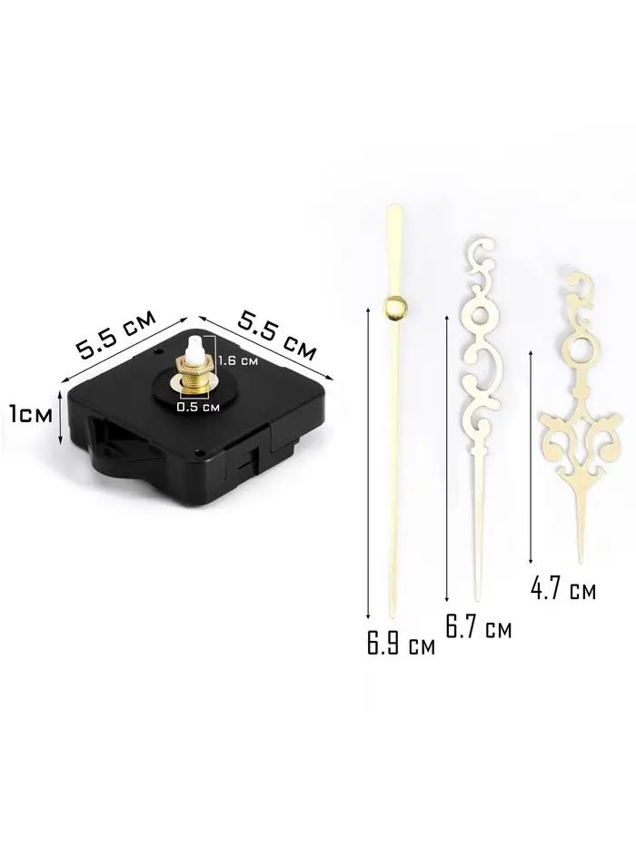 Часовой механизм со стрелками «Соломон-37», плавный ход, шток 16 мм, стрелки 60/88/98 мм