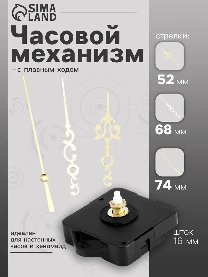 Комбинация металла и пластика в конструкции гарантирует надёжность и долговечность механизма, а плавное движение стрелок исключает раздражающие щелчки и шумы, создавая гармоничную атмосферу в помещении. Шток длиной 16 мм с резьбой 8 мм обеспечивает удобство монтажа и совместимость с большинством стандартных часов.