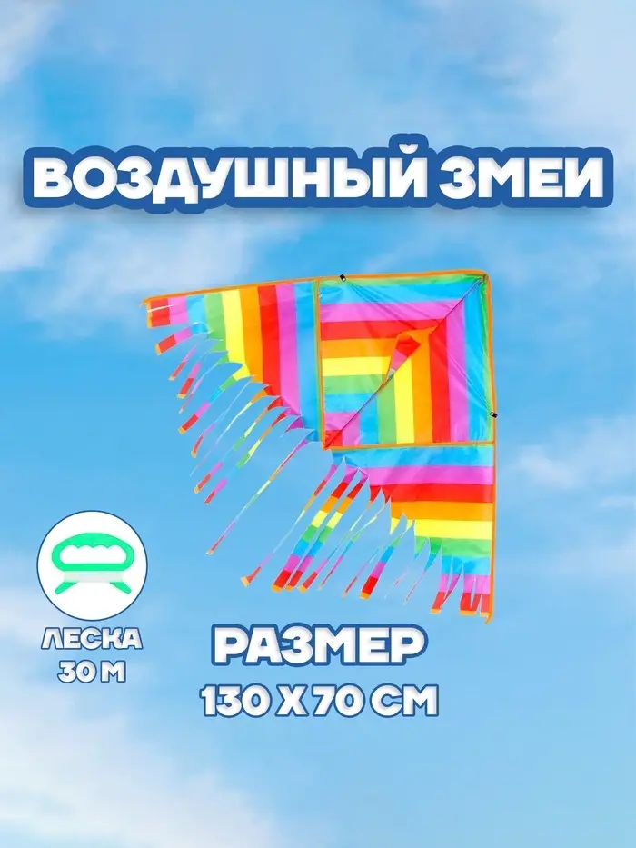 - Длина лески 30 метров позволяет змею подниматься высоко в небо, что делает игру ещё более захватывающей.
