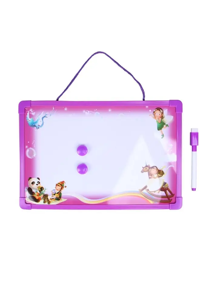 Доска магнитная, маркер и 2 магнита в комплекте, цвета МИКС значительно упростит вам задачу обучения малыша. На этой доске можно писать, рисовать, считать и заниматься с обучающими магнитами. Специальная губка полностью стирает всё написанное водным маркером, таким образом, доска становится многоразовой. Учитесь с удовольствием!