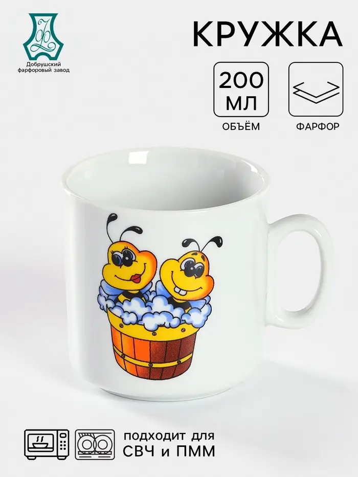 Кружка детская Добрушский завод «Пчёлы», 200 мл, фарфор, белая, рисунок МИКС