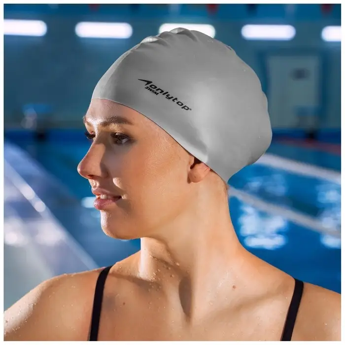 Шапочка для плавания взрослая ONLYTOP, силиконовая, обхват 54-60 см, МИКС