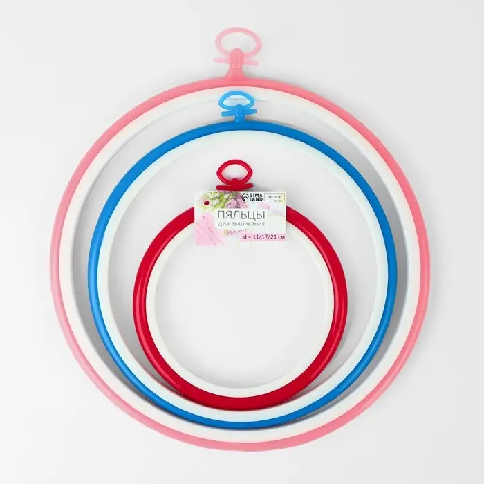 Пяльцы для вышивания с подвесом, d=12/17/21 см, 3 шт., разноцветные