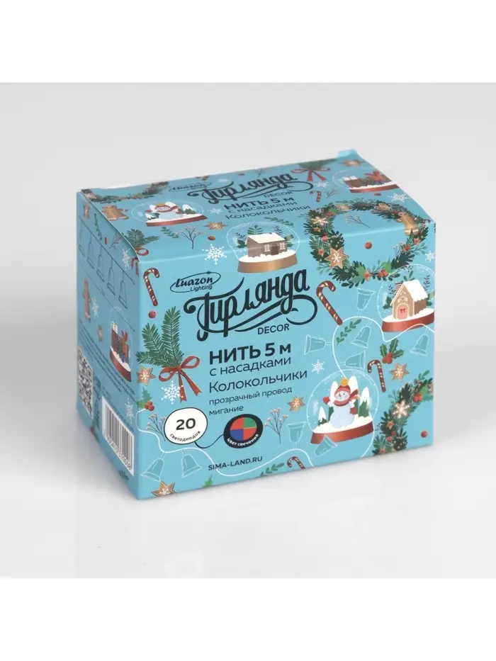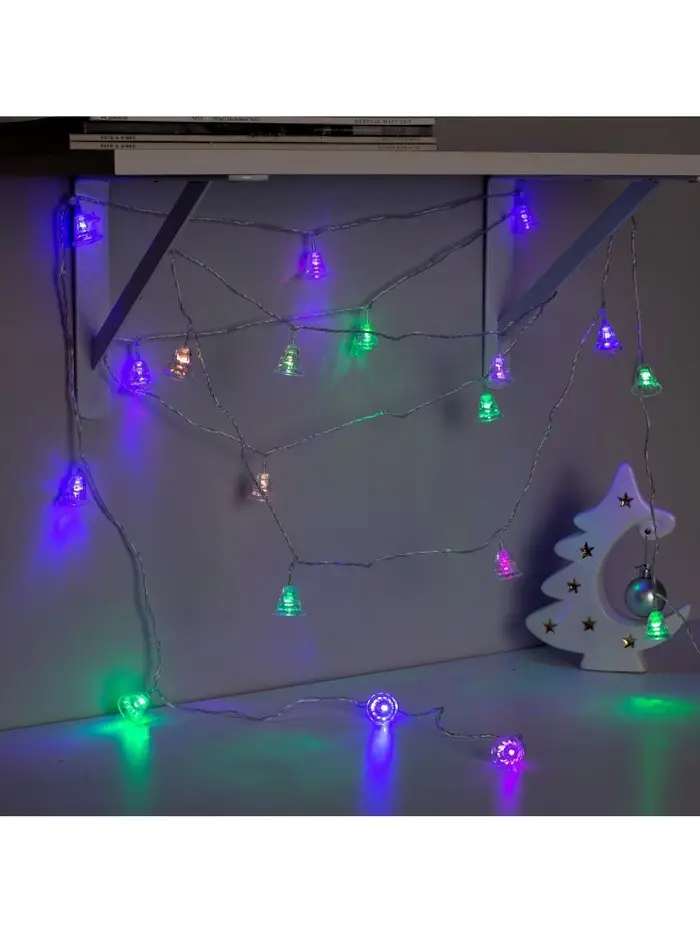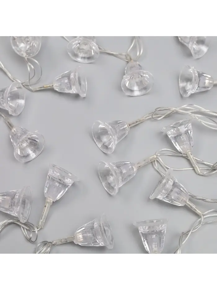 Гирлянда «Нить» 5 м с насадками «Колокольчики», IP20, прозрачная нить, 20 LED, свечение мульти (RG/RB), мигание, 220 В
