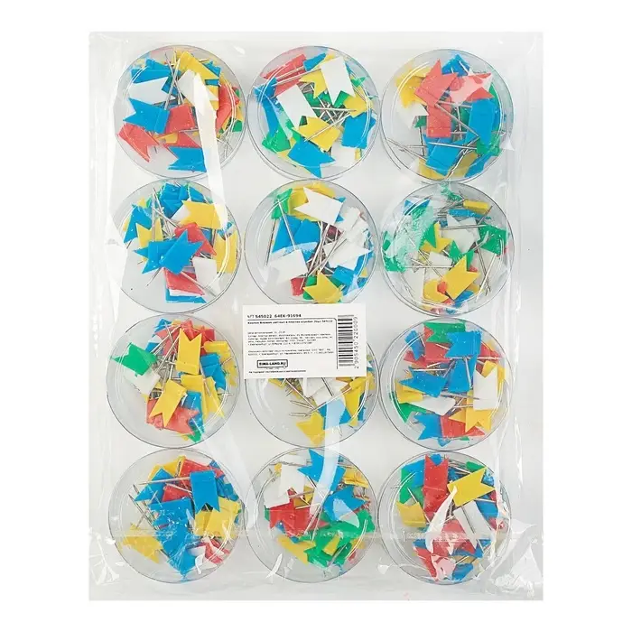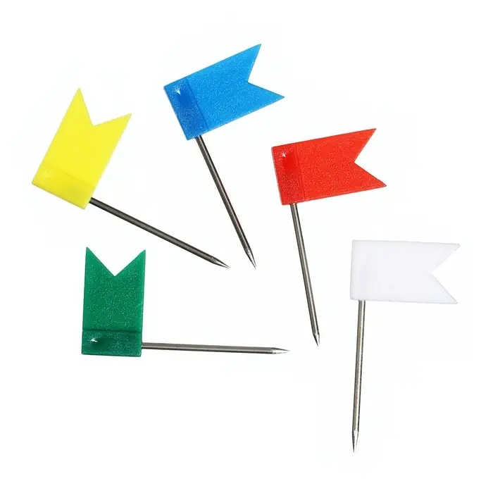Булавки-флажки предназначены для создания отметок на картах, графиках и для крепления информации к пробковым доскам. Флажки пластиковые, разноцветные.
