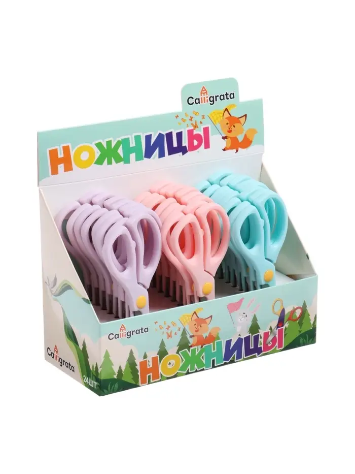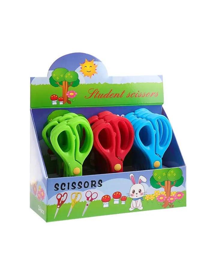 Ножницы 13 см, пластиковые ручки, закругленные концы, блистер, в картонной коробке, корпус МИКС