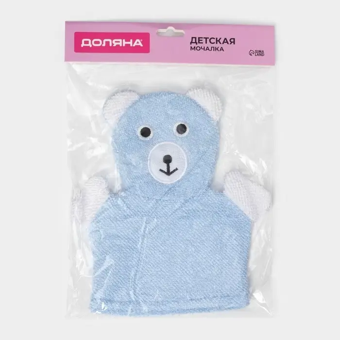 Мочалка варежка детская Доляна «Мишка», для купания, 22 см