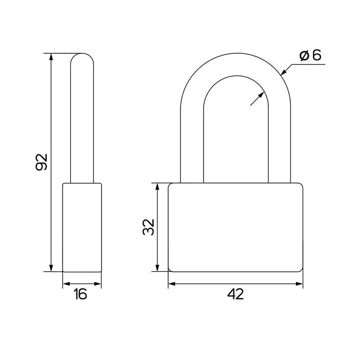 Замок навесной, тип 6, 6×50 мм, длинная дужка