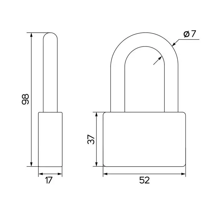 Замок навесной, тип 7, 52×95 мм, 3 ключа