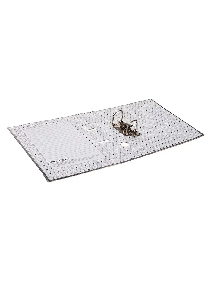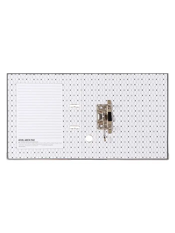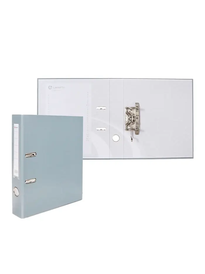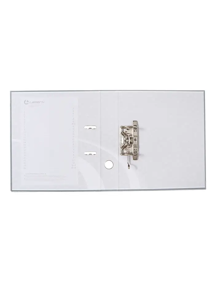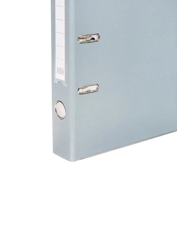 Папка-регистратор с арочным механизмом изготовлена из плотного картона, с внешней стороны заламинированного полипропиленовой пленкой (РР) с текстурой "лен", внутри оклеена бумагой с алфавитно-цифровым полем для классификации на левой стороне.