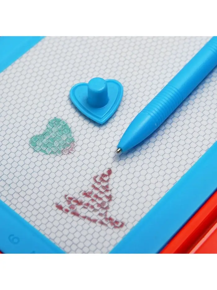 Рисование на магнитной доске развивает мелкую моторику, координацию движений, воображение и творческое мышление. Использование штампов помогает ребёнку осваивать формы и тренировать точность движений, а также способствует подготовке руки к письму.