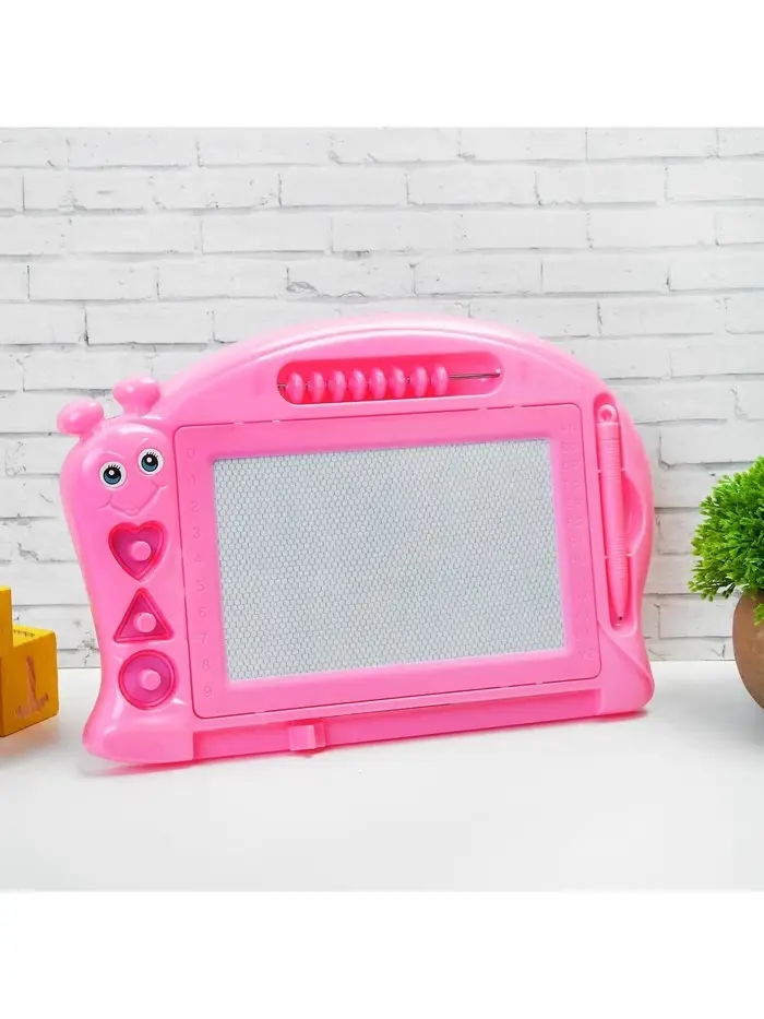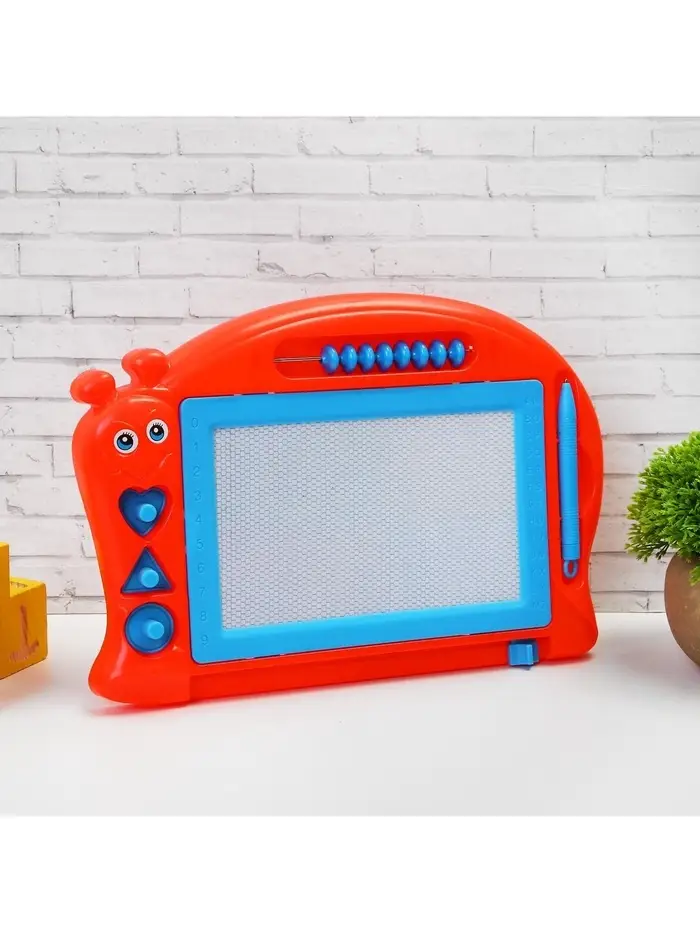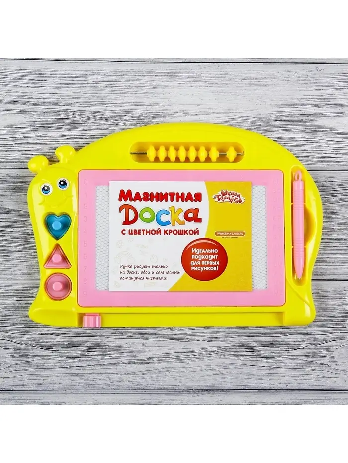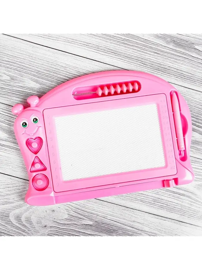 Магнитная доска «Улитка» — это удобная и яркая игрушка для рисования, которая помогает ребёнку творить без бумаги, красок и фломастеров. Рисунки создаются с помощью стилуса и магнитных штампов, а затем легко стираются, позволяя начинать снова и снова.
